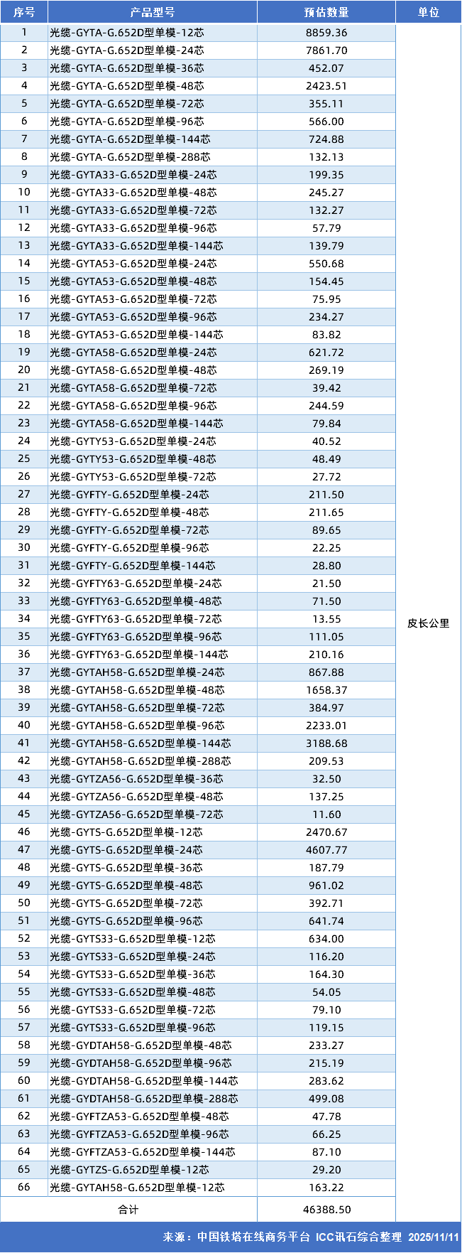文章标题:中国铁塔启动2025-2026年光缆集采 预估采购46388.5皮长公里