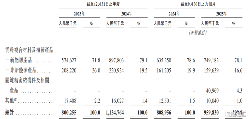 按产品来划分,浙江荣泰的收入主要来自云母复合材料及相关产品的销售,包括新能源汽车安全件、家用电器阻燃绝缘件、电缆阻燃绝缘带等。