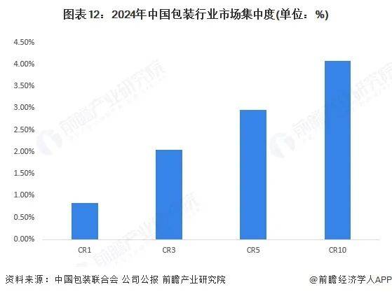 就国内市场格局来看,除少数龙头企业与外资企业外,中国包装产品生产企业多数规模较小、技术水平较低,缺乏自主创新能力,从而导致行业低端市场竞争的无序,产品主要以低档次、低附加值产品为主。目前,我国包装行业竞争格局十分分散,行业仍处于完全竞争的市场阶段。基于行业代表性企业2024年营业收入和市场规模,前瞻初步测算2024年我国包装行业CR10市场份额未超过5%。整体来看,包装行业企业竞争较为分散,行业龙头企业市场份额较低,行业集中度有待进一步提升。
